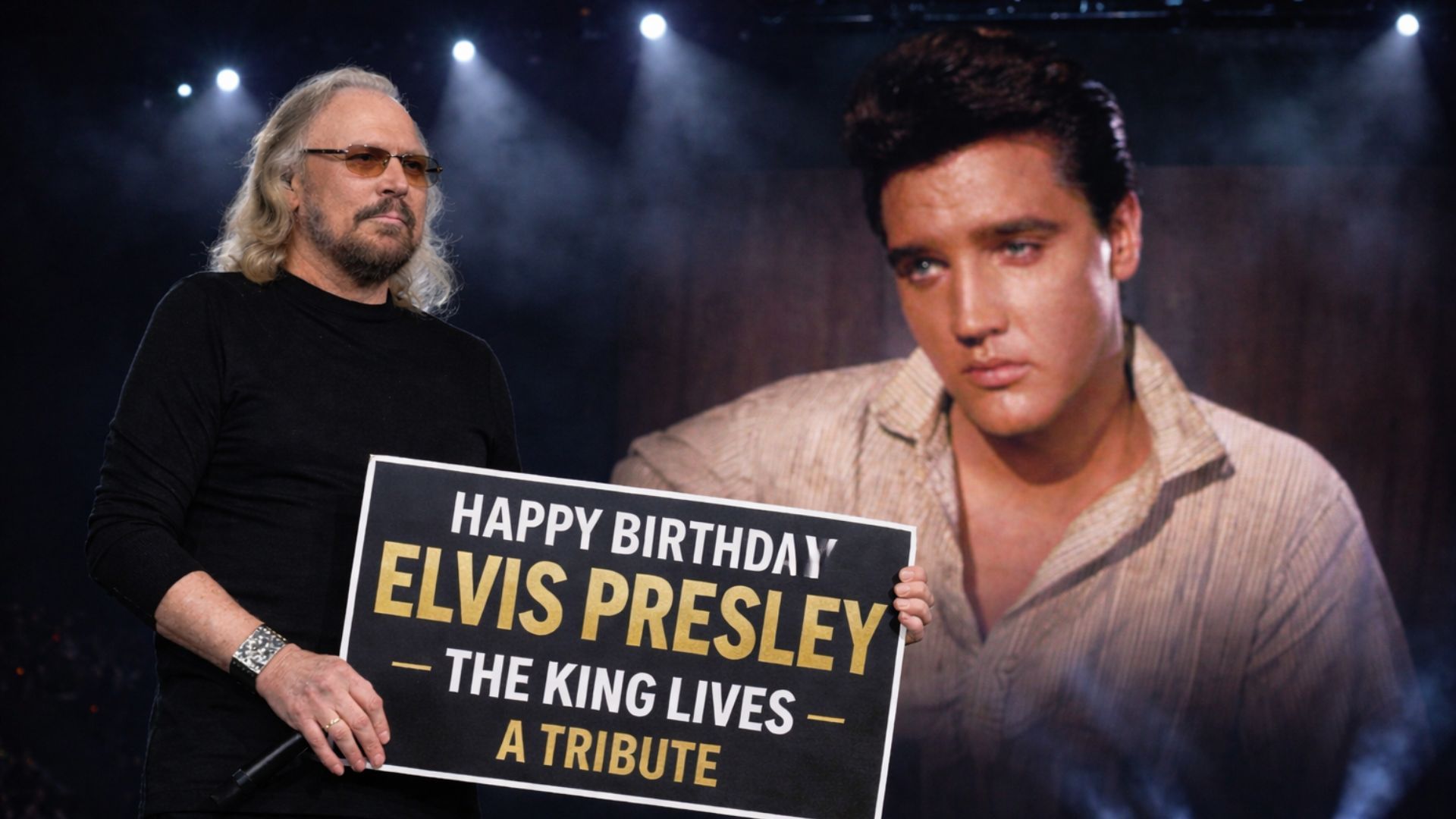 There are evenings when music steps beyond performance and becomes reverence. One such night unfolded under soft lights and restrained anticipation, when Barry Gibb walked onto the stage alone to honor the birthday of a man whose influence reshaped the sound of the modern world — Elvis Presley. It was not announced as a grand tribute, nor framed as a historic event. Yet from the moment Barry Gibb appeared, the atmosphere shifted into something profoundly reflective.