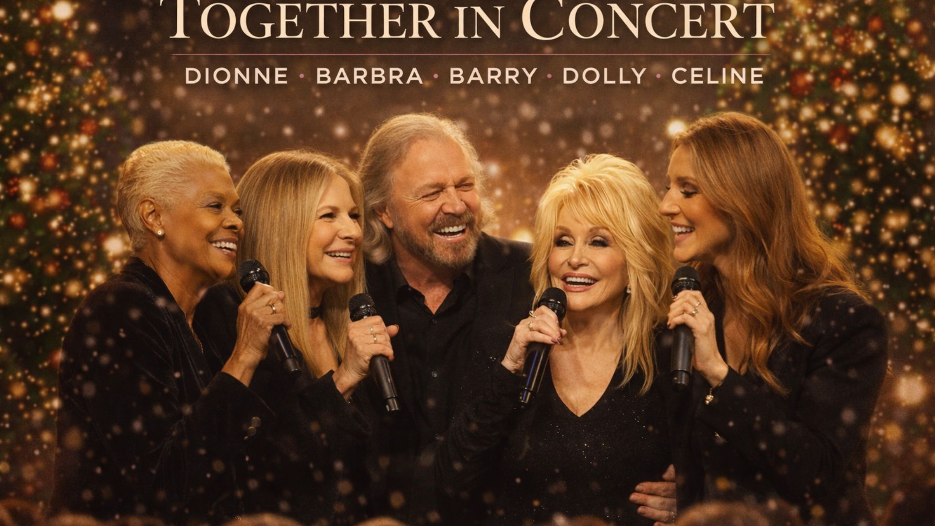On a winter evening warmed by soft lights and shared memory, something quietly extraordinary unfolded. There was no thunderous announcement, no spectacle designed to overwhelm. Instead, there was a gathering — rare, unrepeatable, and deeply human. Dionne Warwick, Barbra Streisand, Barry Gibb, Dolly Parton, and Céline Dion stood together for what would be remembered as their final Christmas performance of 2025, a moment that felt less like a concert and more like a shared breath held by the world.